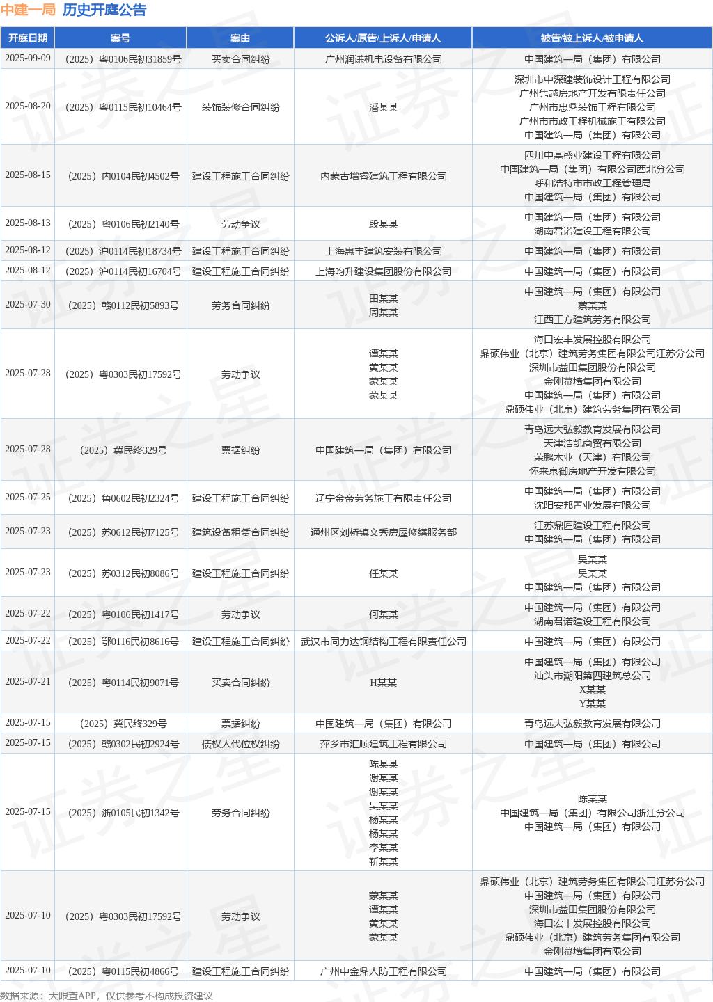 本站消息,根据天眼查APP显示,近日公布了一则中国建筑一局(集团)有限公司作为被告/被上诉人的开庭公告,详细内容如下: